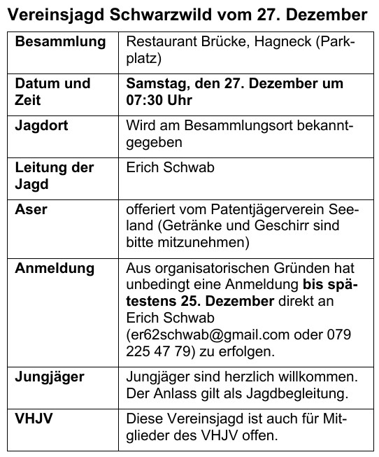 Die Vereinsjagd des PJVS steht auch den Mitgliedern des VHJV offen.